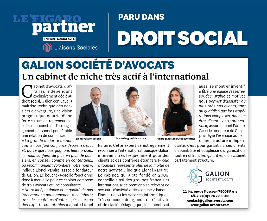 Publication : « GALION SOCIÉTÉ D’AVOCATS, Un cabinet de niche très actif à l’international »